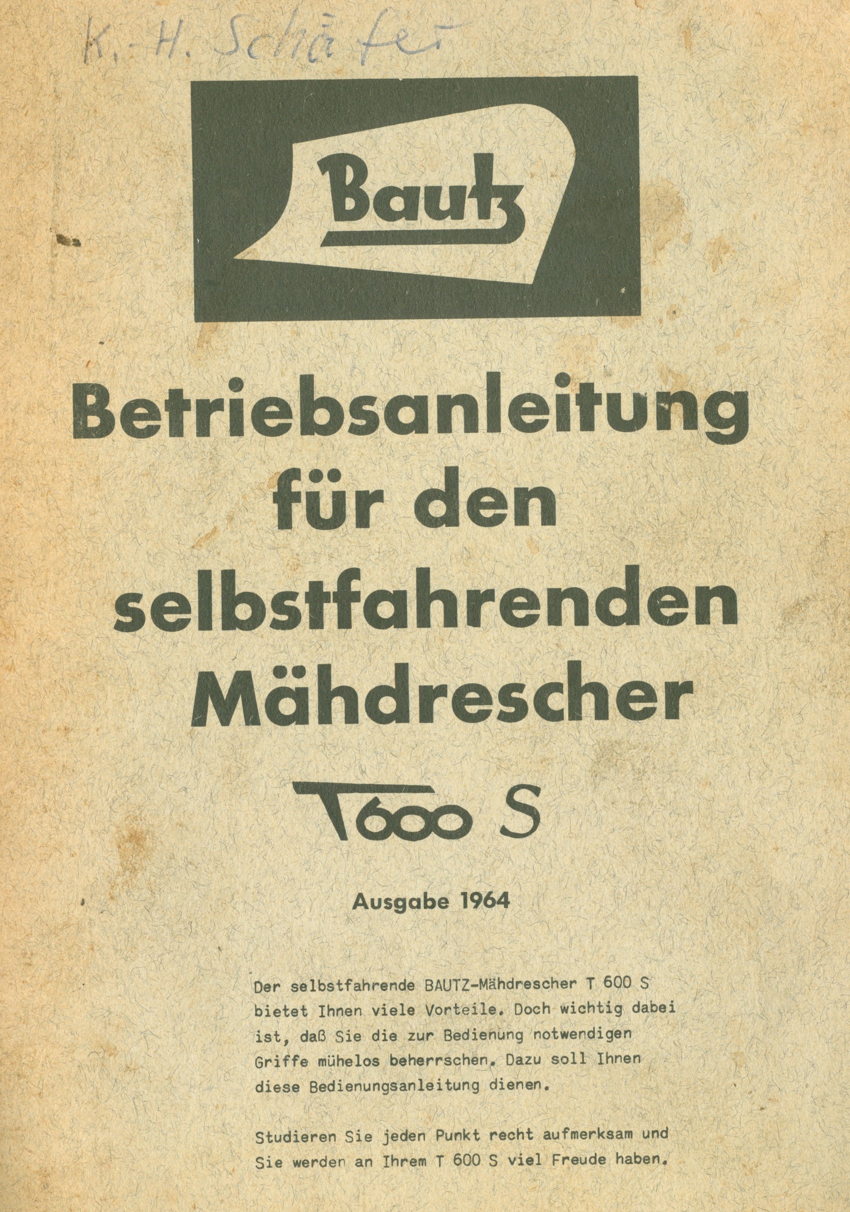 Bautz T 600 S Mähdrescher Betriebsanleitung