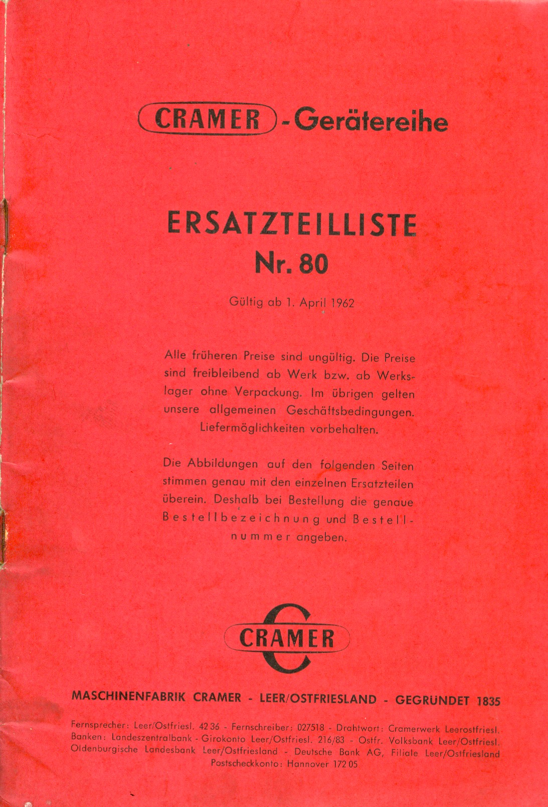 Stand: 1.4.1962. Für die Gerätebereiche LA, SA, SV, halbautom. Kartoffellegemaschine, Pflanzlochstern, Spurzieher, Gleitschuh, Kartoffelhacke, Schnellhäufler, Rübenhacke, Grubber, Egge, Striegel. 62 Seiten. DIN A 5 Hochformat. Sprache deutsch. Zustand befriedigend/ausreichend, Gebrauchsspuren. Vollständig. Original.