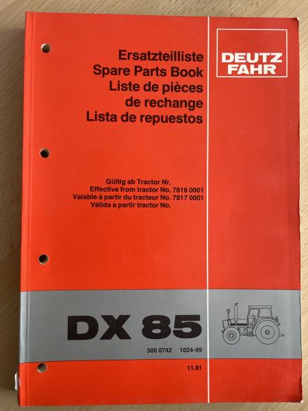 Deutz DX 85 Ersatzteilliste, Stand 11/81