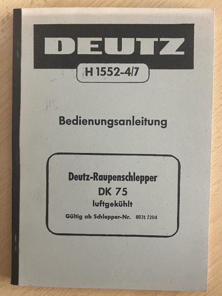 Bedienungsanleitung Deutz-Raupenschlepper DK 75, ab Schlepper-Nr. 8031/204. Nr. H 1552-4/7. 116 Seiten.