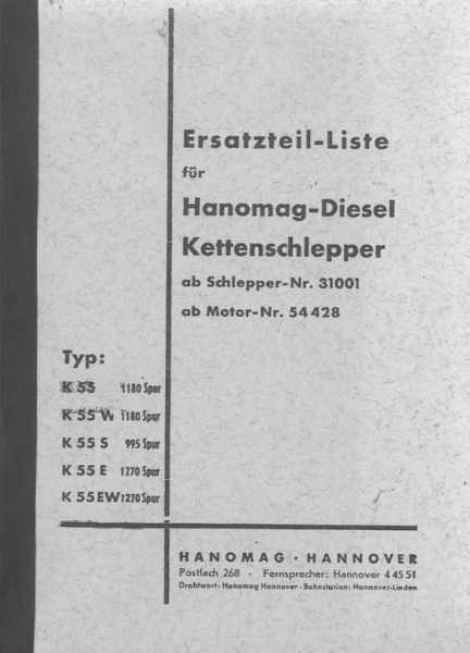 Hanomag-Kettenschlepper K55, K55 W, K55 S, K 55 E, K55 EW, ab Schlepper-Nr. 31001: Ersatzteilliste