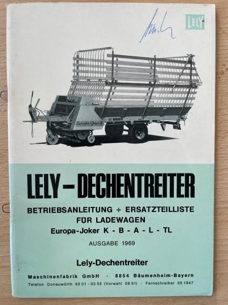 Lely-Dechentreiter Ladewagen Europa-Joker K/B/A/L/TL, Betriebsanleitung und Ersatzteilliste, 1969