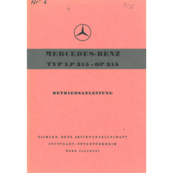 Fzg.-Art: Lkw, Typ: LP 315 / OP 315, Art/Seiten: BAL, Heft/74 Seiten, Format: A5 hoch, Drucknummer: , Auflage: B Ausgabe, Jahr: 11.1957, Zustand: gut, Sprache: deutsch.
