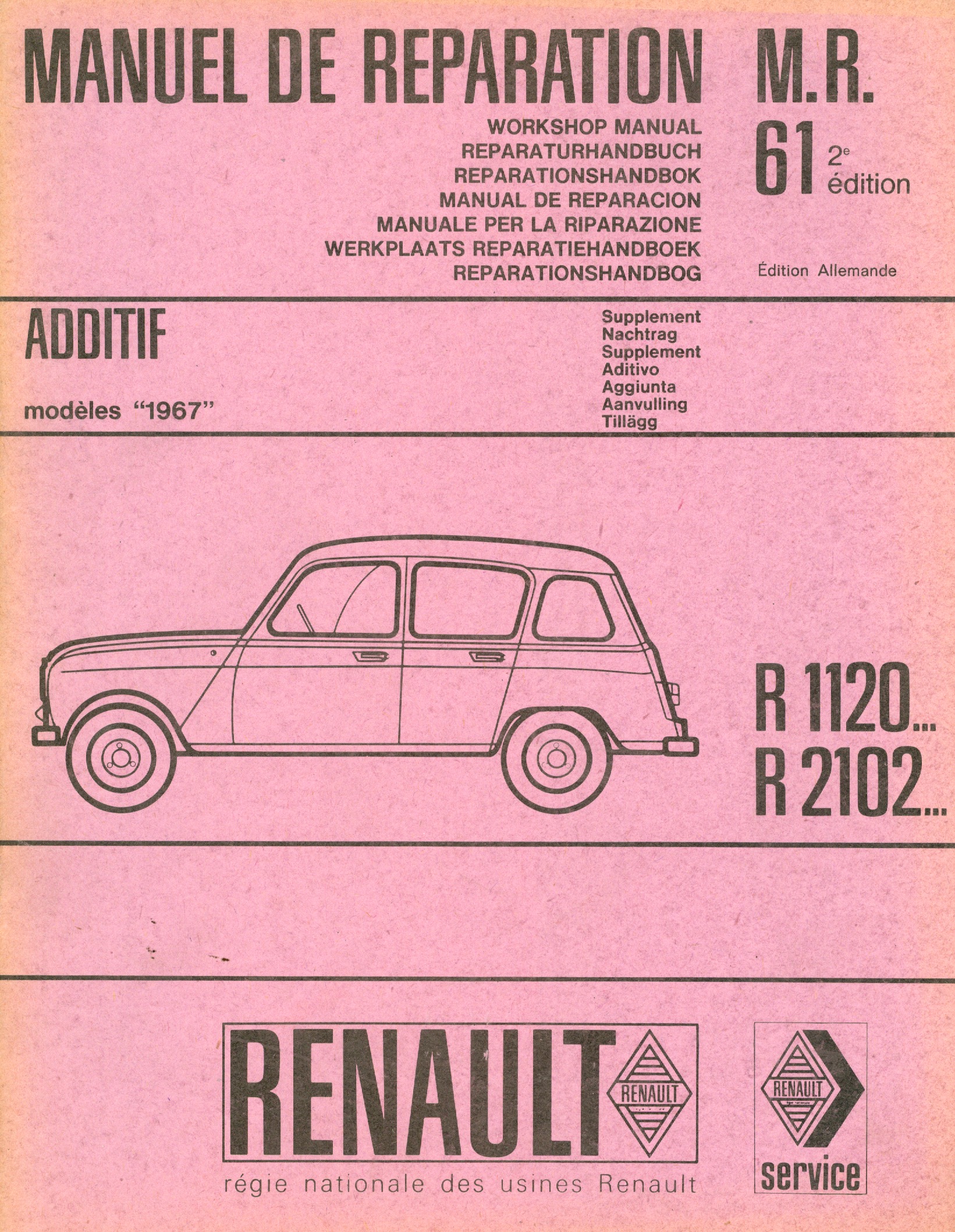 Renault R 1120/2102 Nachtrag Modelle 1967 zum Reparaturhandbuch M.R.61, 2. Ausgabe