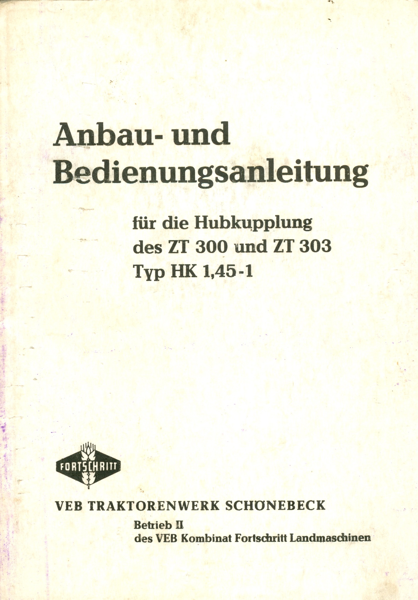 ZT 300 Anbau- und Bedienungsanleitung für Hubkupplung KH 1,45-1